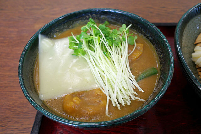 3つのバリエーションがあり基本が ”カレーうどんI ” 、こくと辛さをUPした ”カレーうどんII ” 、そして更に贅沢にスパイスを使った ”ジパングカレーうどん” というふうになっていて今回オーダーしたのは最上級グレードの ”ジパングカレーうどん”