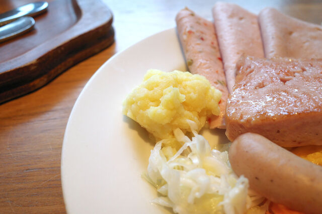 どのソーセージも美味しいけど特にふわっふわ食感のレバーケーゼが最高。