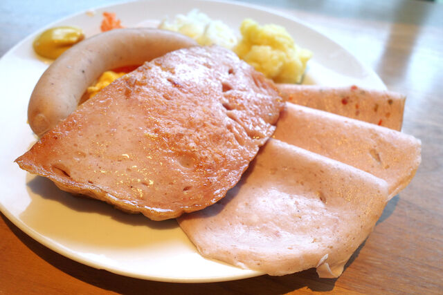 白ソーセージにレバーケーゼ、スライスハムが3枚。