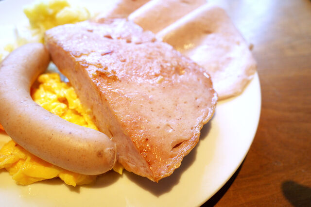 添えられるのはスクランブルエッグにマッシュポテト、ザワークラウトなどなど。