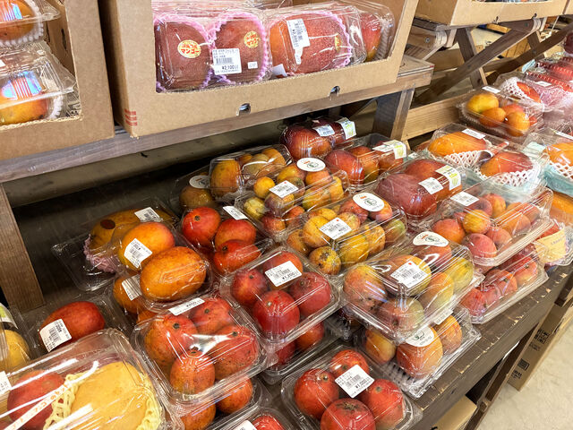我々がお邪魔した7月後半はマンゴーのシーズン最終盤ということで贈答用というよりは自宅用に良さげな見栄えはイマイチだけどリーズナブルなマンゴーがいっぱい。