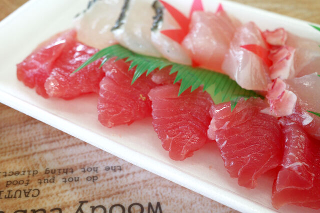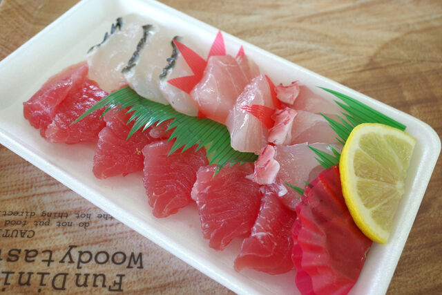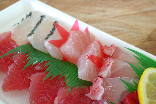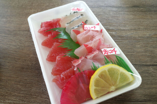 こちらがたいら鮮魚店の地魚のお刺身。
