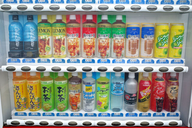 こちら「てるちゃん天ぷら」の横の自動販売機の商品ラインナップ。