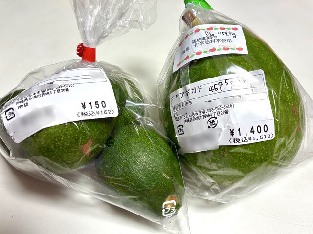昨日のA&W那覇空港店のエントリでも紹介した糸満うまんちゅ市場で購入したミニアボカドと特大アボカド。