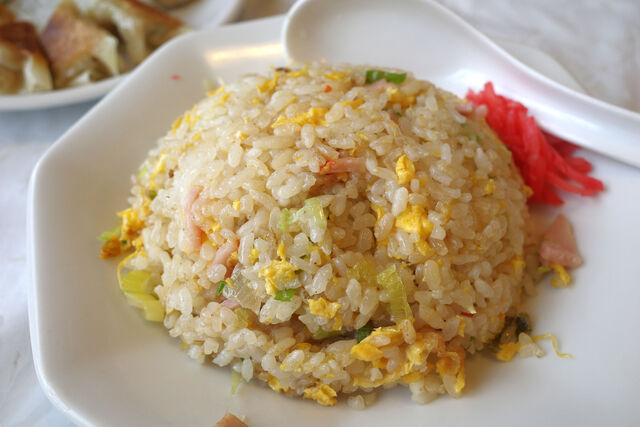 炒飯は昔ながらの赤いハムの入った炒飯。これがウマいんだわ。