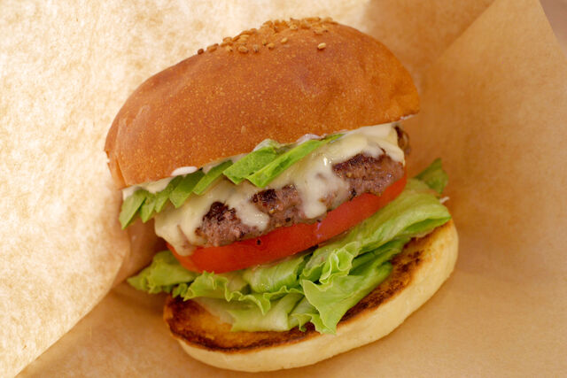 具材がまっすぐ積み上げられていて見た目からして美しいハンバーガー。