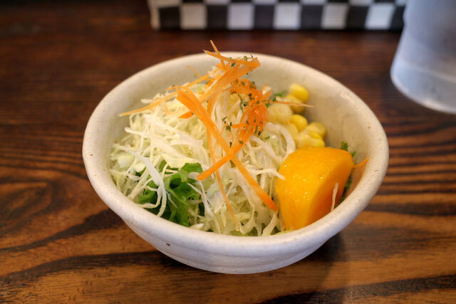 まずはサラダ。柿が一切れついているのが嬉しいね。この柿が今シーズン最初に食べた柿になりました。