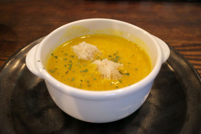 スープはかぼちゃのポタージュ。
