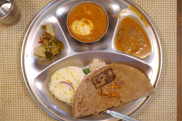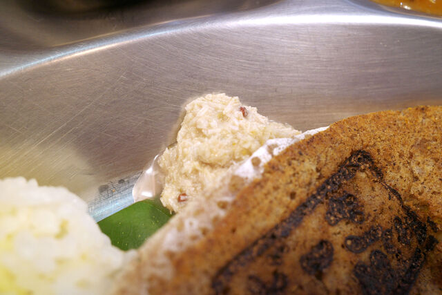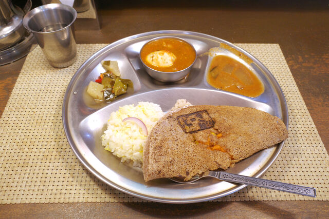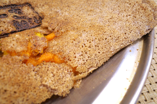 ドーサはプレーンかラギー(シコクヒエ入り生地)が選べるとのことで食べた事のないラギーのほうを。