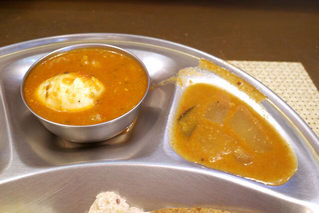 カレーは甘口エッグカレーとサンバールをチョイス。