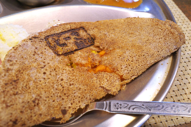 ドーサはポテトマサラが挟まれたマサラドーサ。
