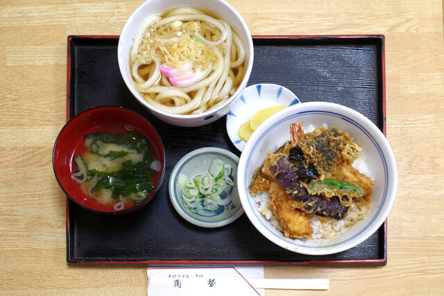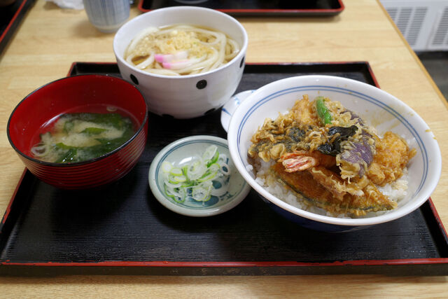 自分は天丼とミニうどんのセットをオーダー。