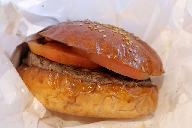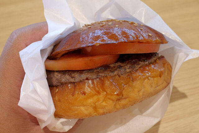 パティとトマトだけのシンプルバーガー。これも絶品。
