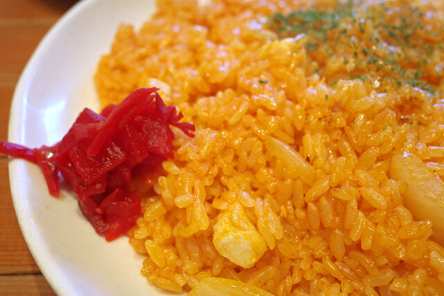 脇に添えられているのは赤い福神漬け