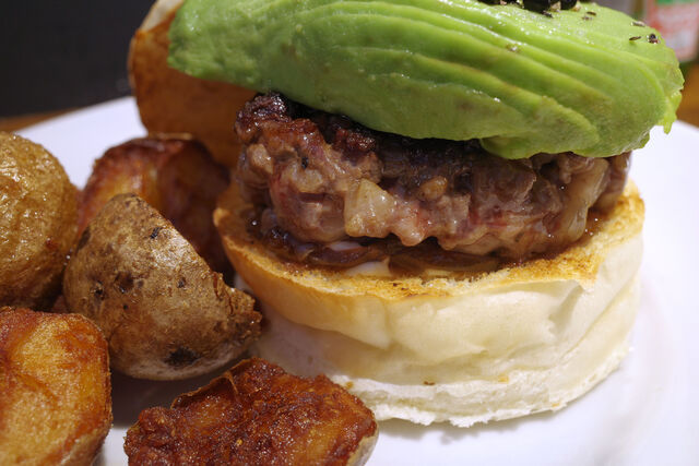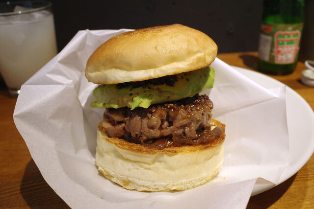いつもながらステーキ感をしっかり感じるワイルドなビーフパティに熟れ熟れアボカド