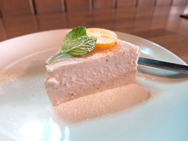お邪魔したのは4月の初め頃。毎年好評の苺のチーズケーキが時期的にもうすぐ終了と聞きデザートにその苺のチーズケーキをいただく。