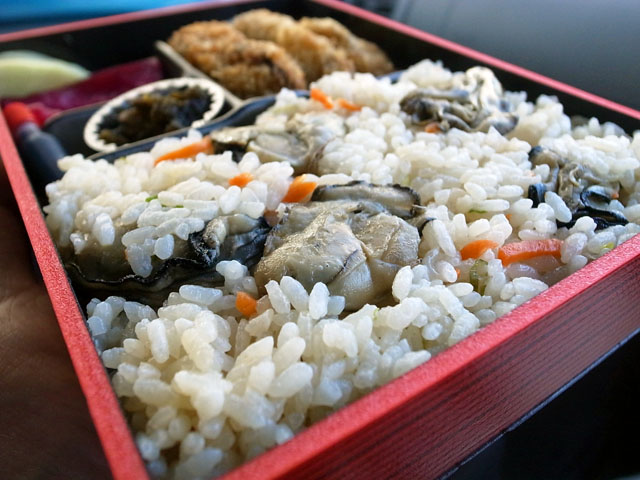 この催事の常連、三重県志摩市の料理旅館 橘さんは今年も出店。ということで鮒寿しサンドとはまた別の日、大好物の「かきめし弁当」を今年もしっかり堪能しました。