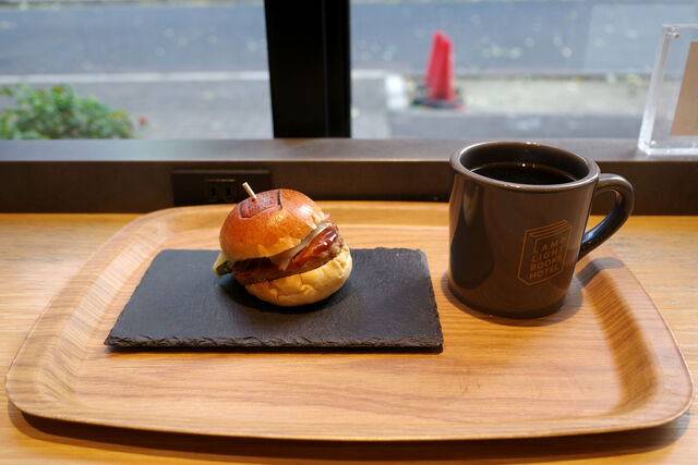ミニバーガー(アスパラベーコンチーズ)/ランプライトブックスカフェ(伏見)